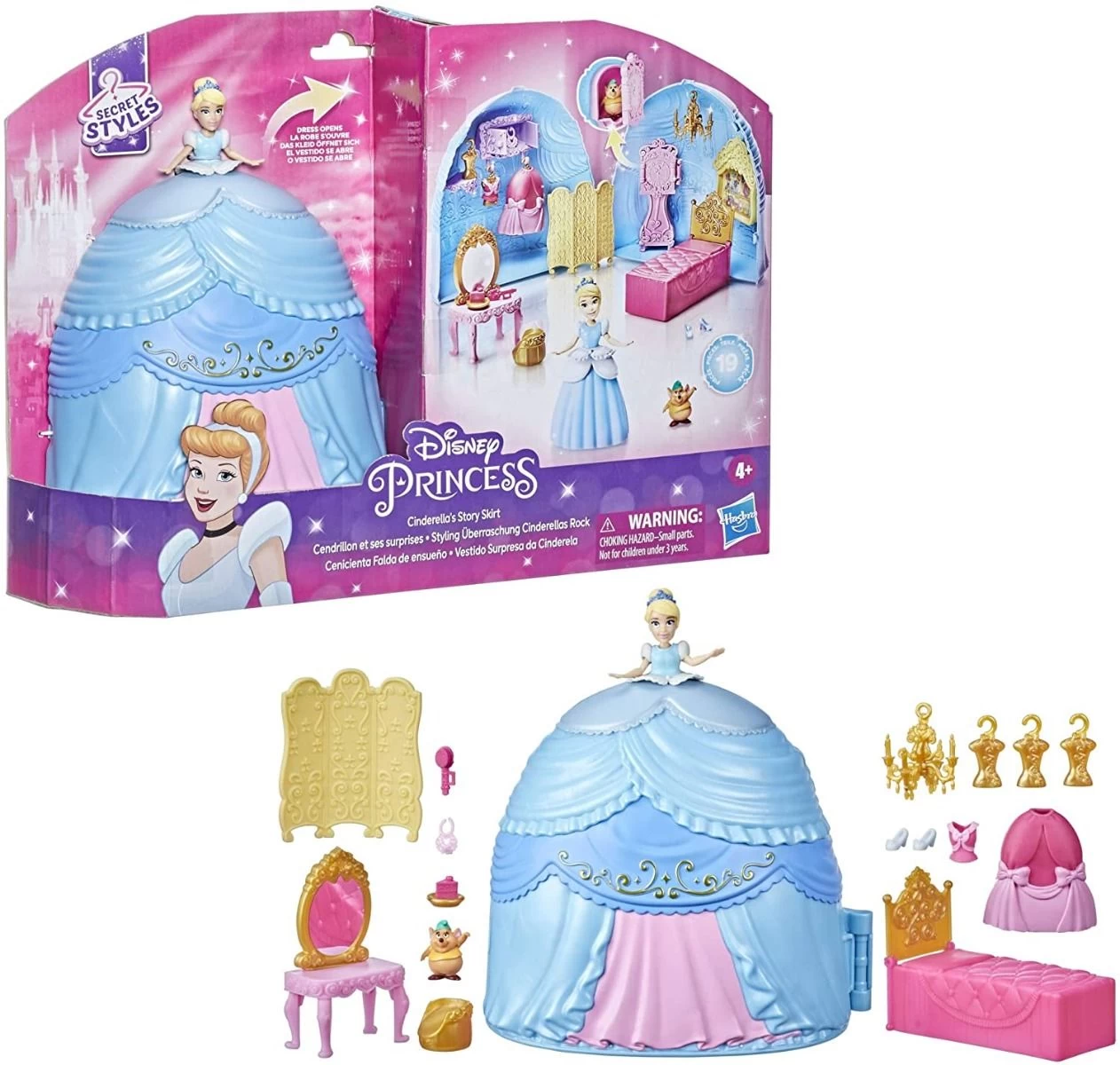 - CINDERELLA STORY SKIRT: Open up a world of imagination with this Disney Princess toy featuring Cinderella and her mouse friend Gus Gus