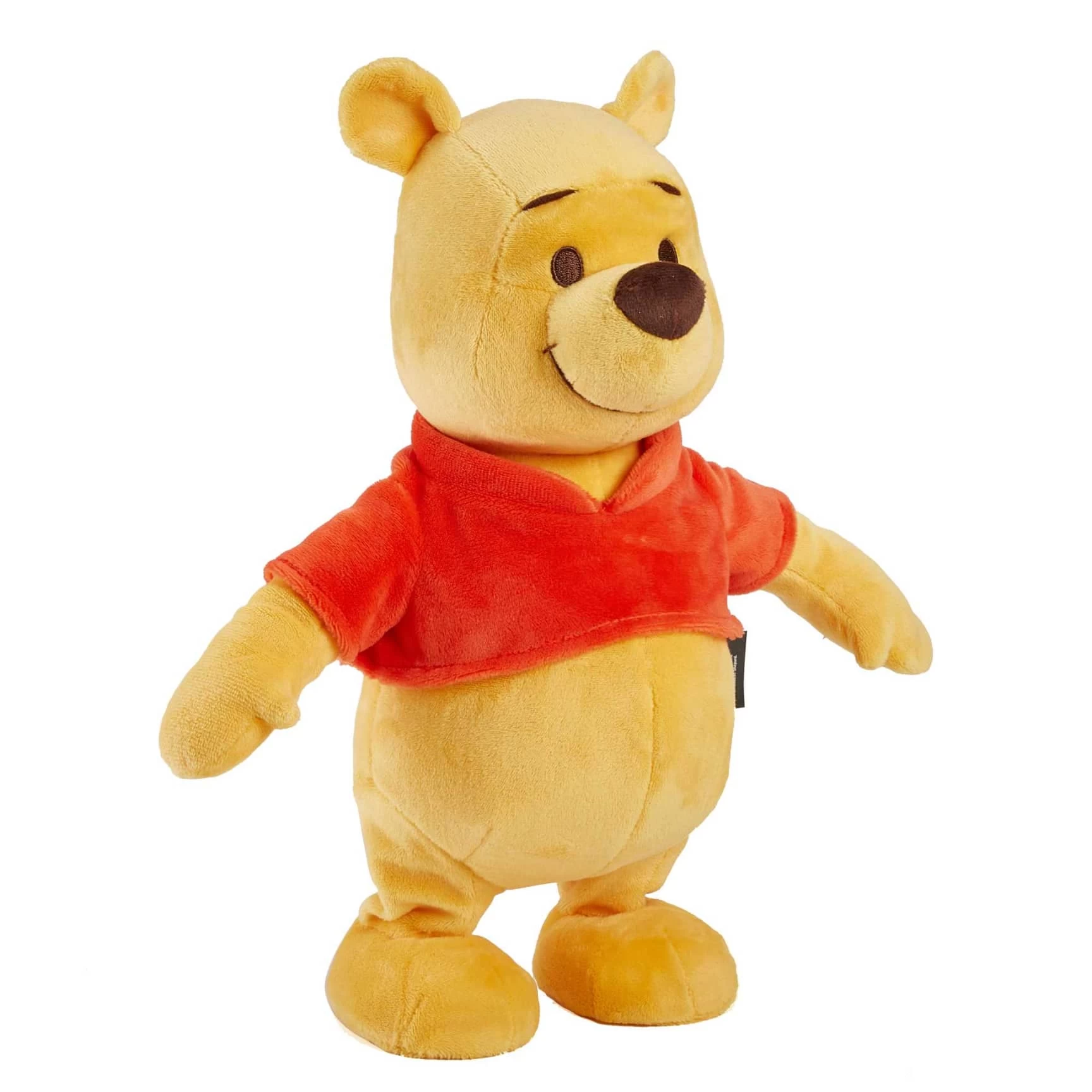- As the Winnie the Pooh plush figure walks, he’ll sing or speak familiar tunes and phrases!