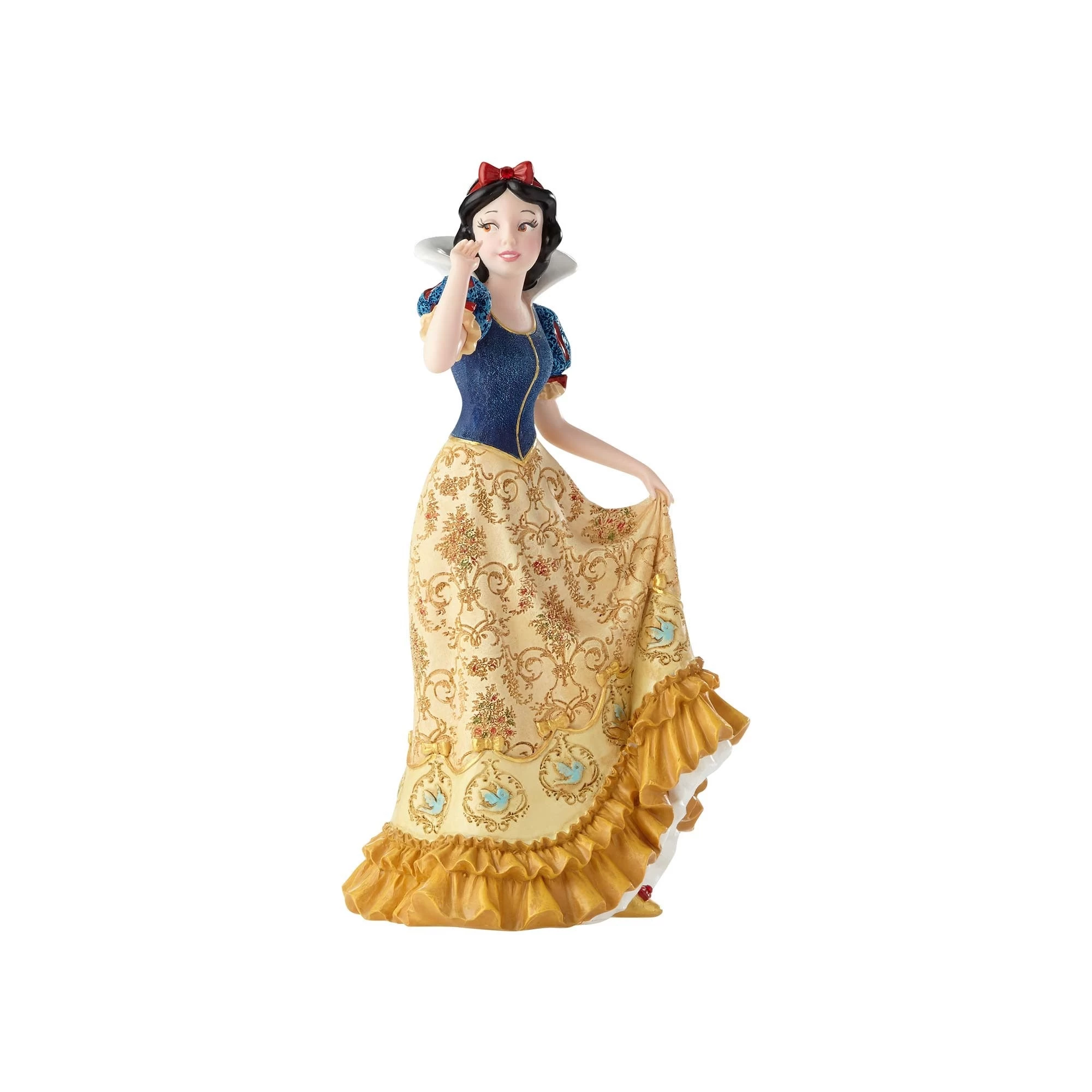 Snow White is far too dressed up to sweep the house in this gorgeous gown! This glittering design 7.75” features heavy brocade, beautiful draping, and ruffle details all meticulously sculpted from stone resin and painted by hand for a perfect finish.
