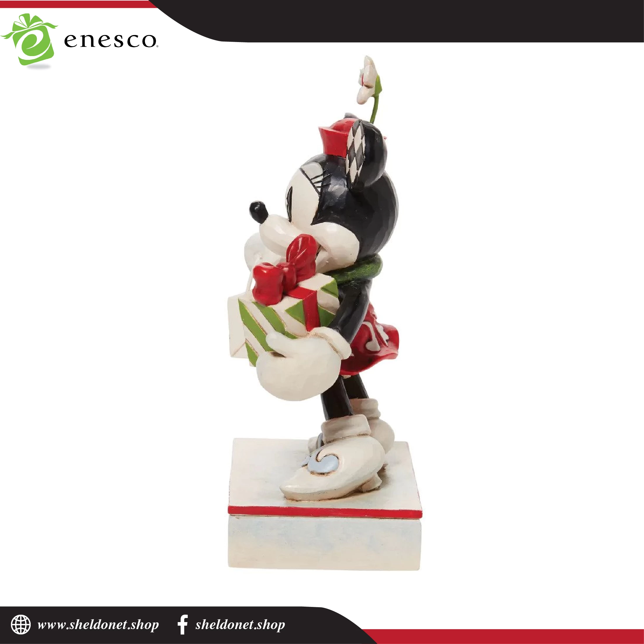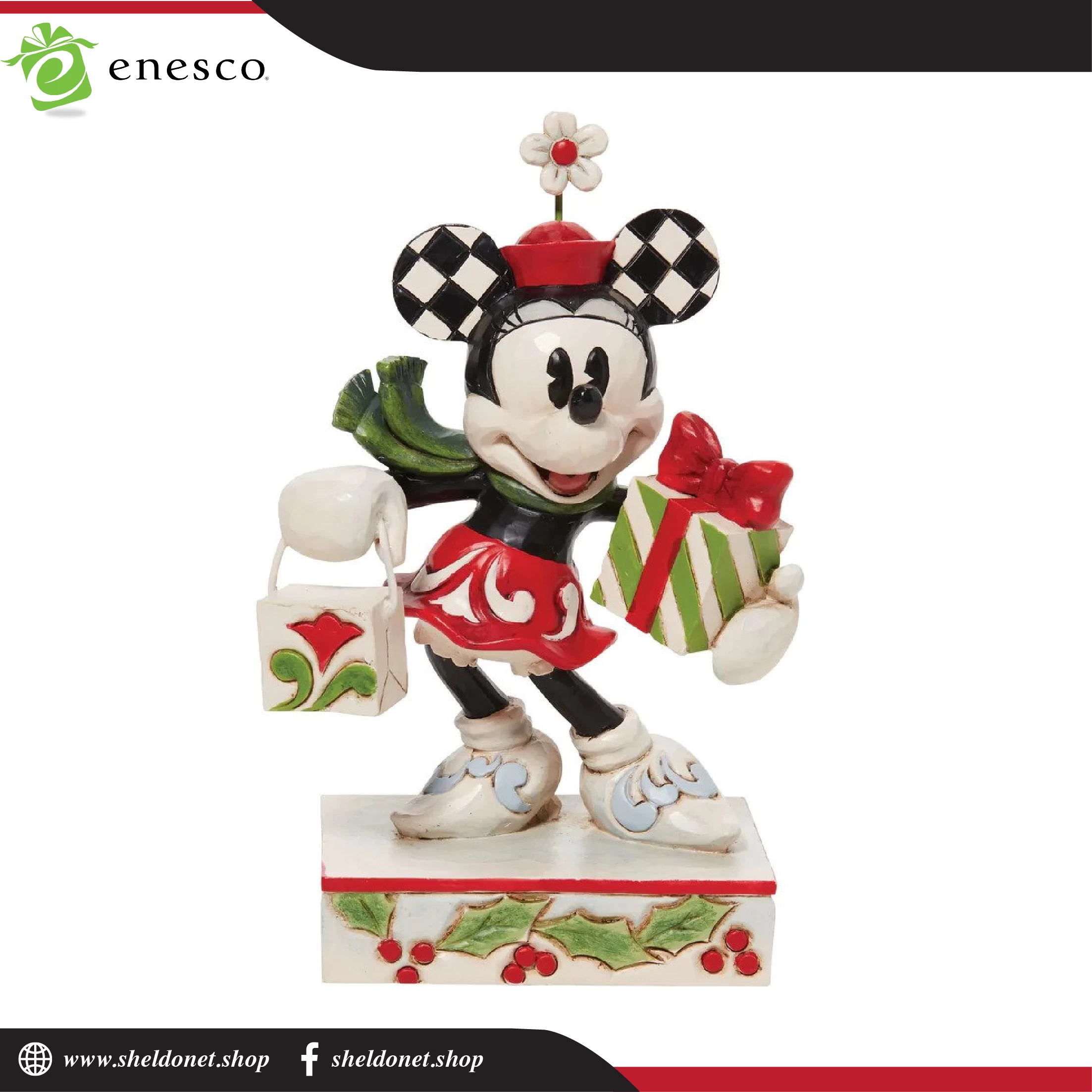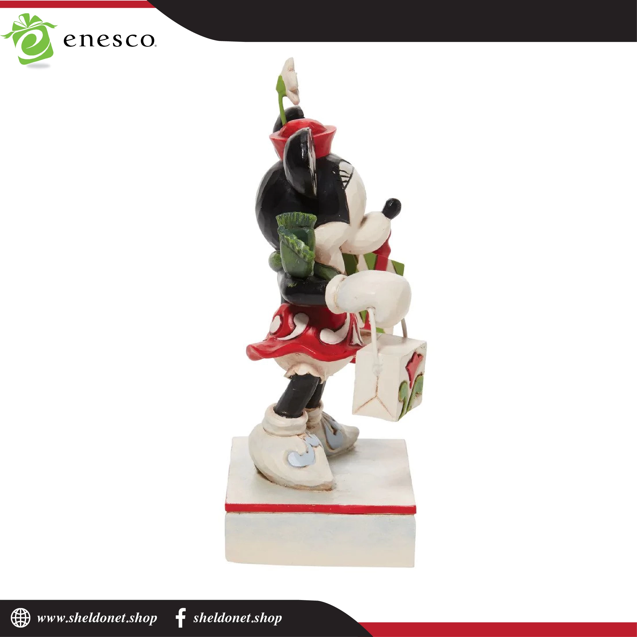 Disney comes home for the holidays with this festive figurine by Jim Shore. Minnie Mouse is an icon of fashion and friendliness this year as she completes her Christmas shopping. Boasting with bags, she’s eager to share the giving spirit with you.