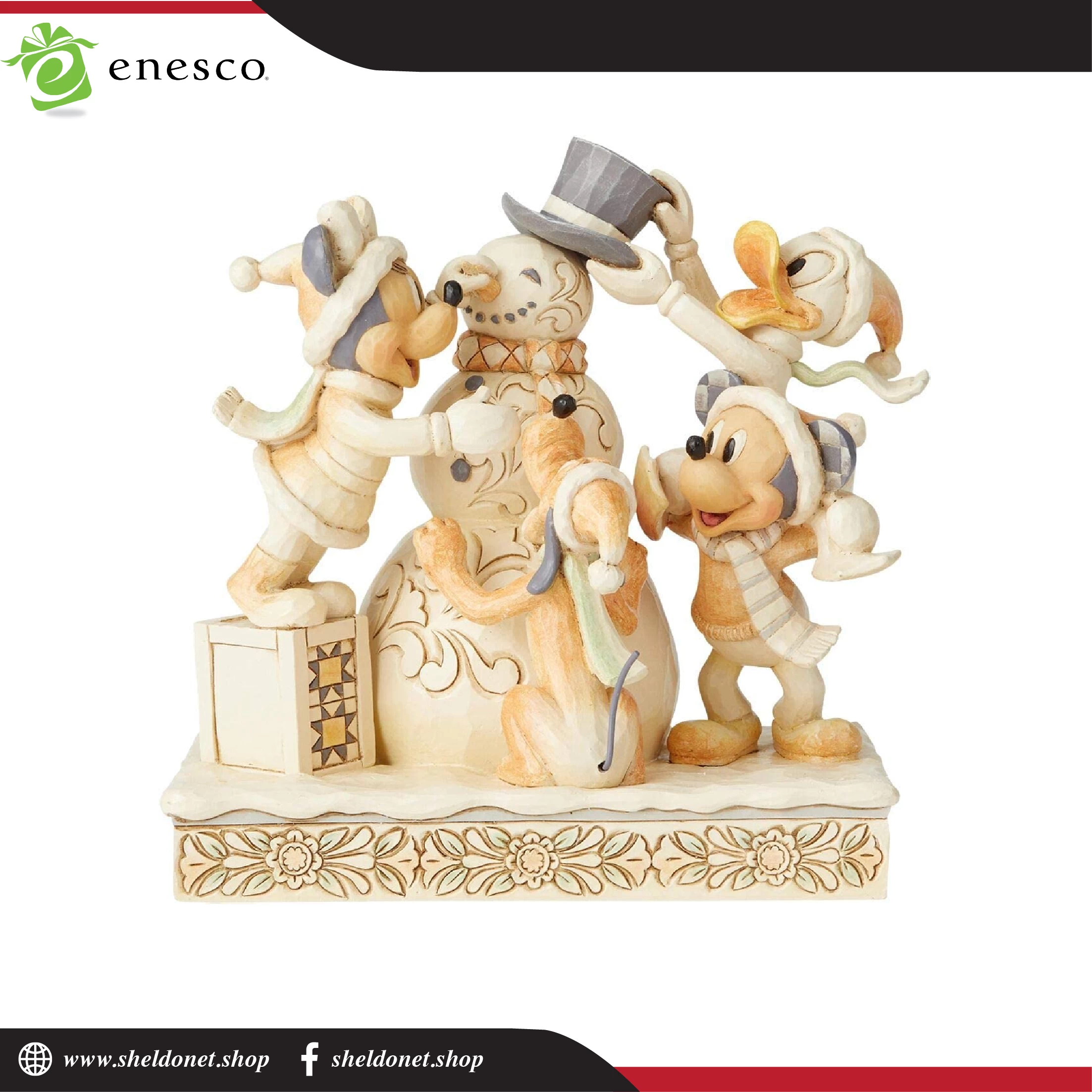 Enesco Disney Traditions Fab Four White Woodland Figurine features Mickey Mouse and his friends, making a snowman, on an elaborately patterned rectangle base. This will surely make a great collector’s item or a wonderful gift for a fan of Disney.