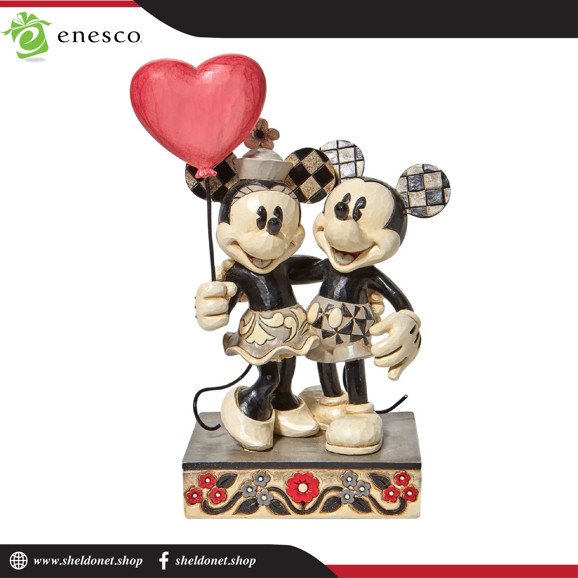 Celebrate love with the original Disney couple with this sweet relief by Jim Shore. Mickey Mouse hugs his girl close in this romantic figurine with classic Jim Shore rosemaling.