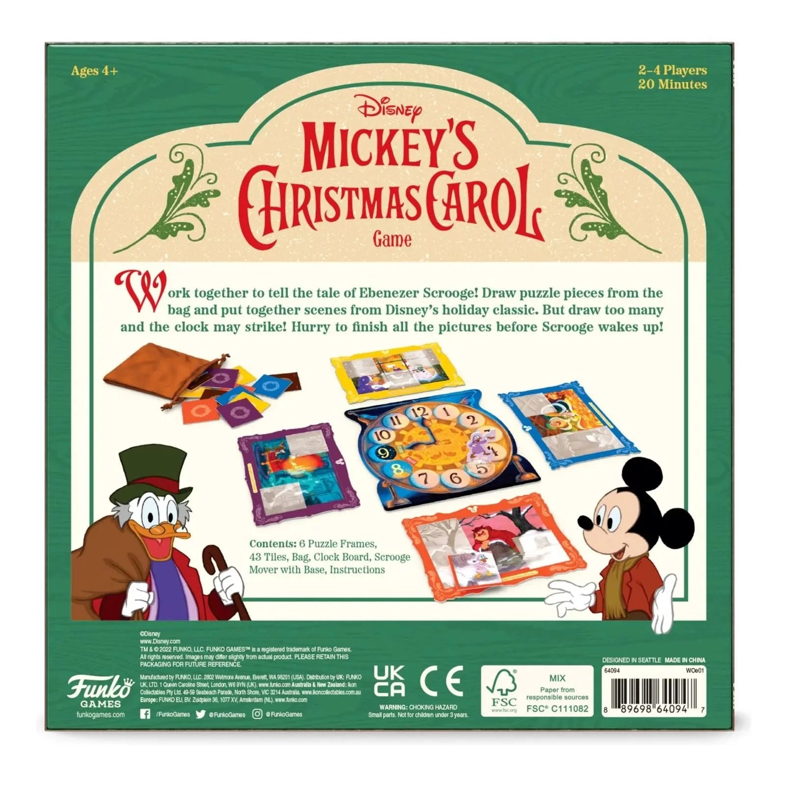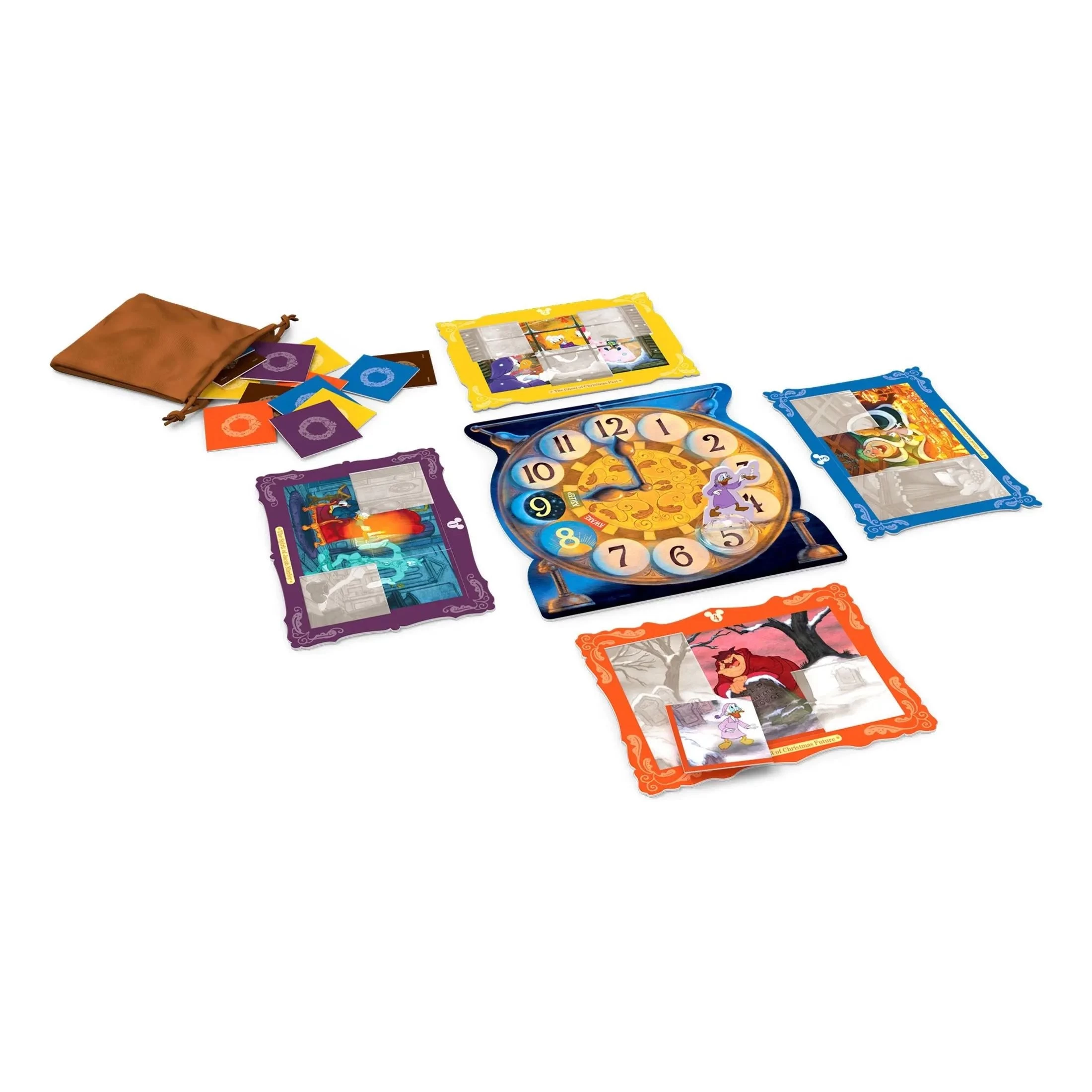 Disney Mickey’s Christmas Carol Game Work together to tell the tale of Ebenezer Scrooge! Draw puzzle pieces from the bag and put together scenes from Disney’s holiday classic. But draw too many and the clock may strike! Hurry to finish all the pictures before Scrooge wakes up!