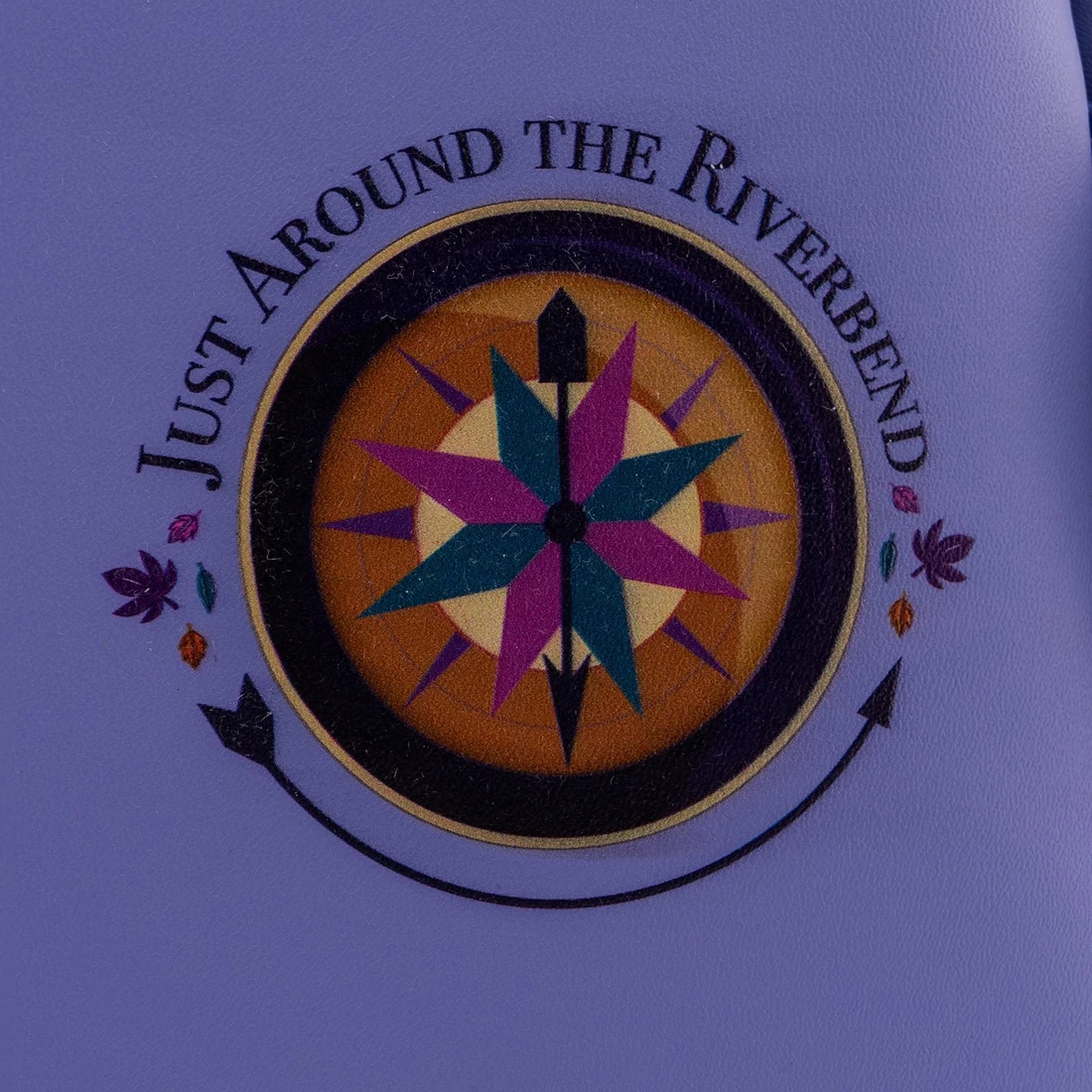 Capture a glimpse of the beauty of nature with Loungefly’s Disney Pocahontas Just Around The River Bend Mini Backpack. In the distance a rainbow beams through the trees, as Pocahontas canoes down the river with Meeko and Flit. It’s a beautiful bag to bring into your Disney wardrobe.